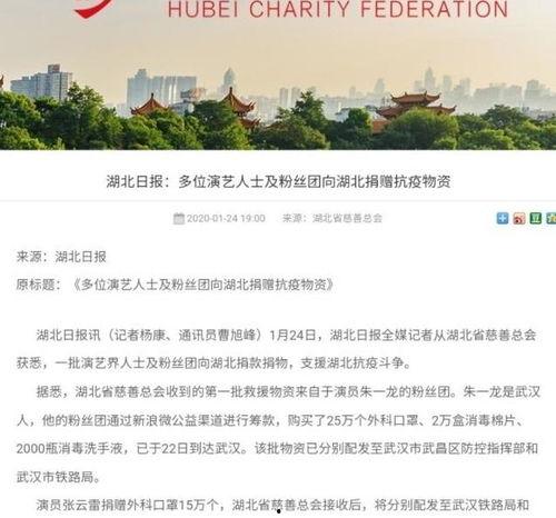 说到武汉,那可是个英雄城市呢!最近,疫情肆虐,武汉人民团结一心,全国上下也纷纷伸出援手。在这场抗疫战争中,不少明星也纷纷捐款,为武汉加油打气。那么,你知道武汉有哪几位明星捐款了吗?今天,就让我带你一探究竟吧!